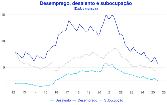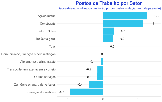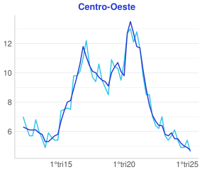 - Analisando os dados dessazonalizados, o desemprego diminuiu de 5.7% para 5.6% no período;