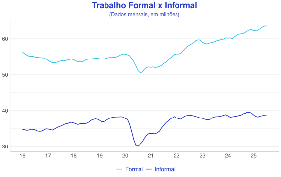 - Finalmente, entre os tipos de ocupação o número de postos de trabalho formal avançou 0.2% em julho, enquanto os postos de trabalho informais se reduziram em 0.5% e no setor público houve crescimento de 0.3%.