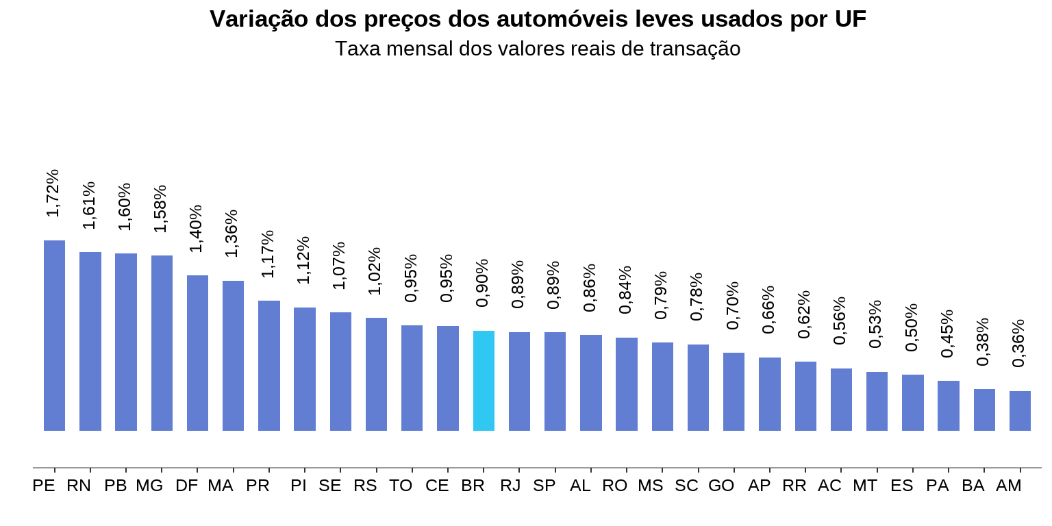 - Em janeiro, a inflação de veículos usados na região Nordeste foi de 1,28%.