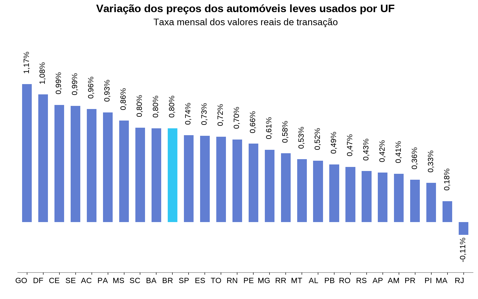 - Em julho, a inflação de veículos usados no Centro-oeste foi de 1,02%.