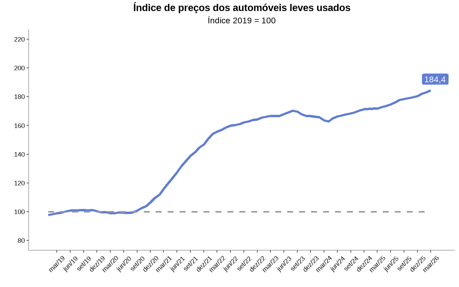 O índice utiliza o ano de 2019 como base histórica inicial, fixando o indicador nacional em 100, para permitir comparações ao longo do tempo até o mês mais recente de 2025. Nos índices regionais, a base é ajustada de acordo com a diferença média de preços em relação ao mercado nacional naquele ano. Isso garante que a série reflita com precisão a evolução dos preços e as diferenças regionais, oferecendo uma leitura mais apurada do mercado de usados.