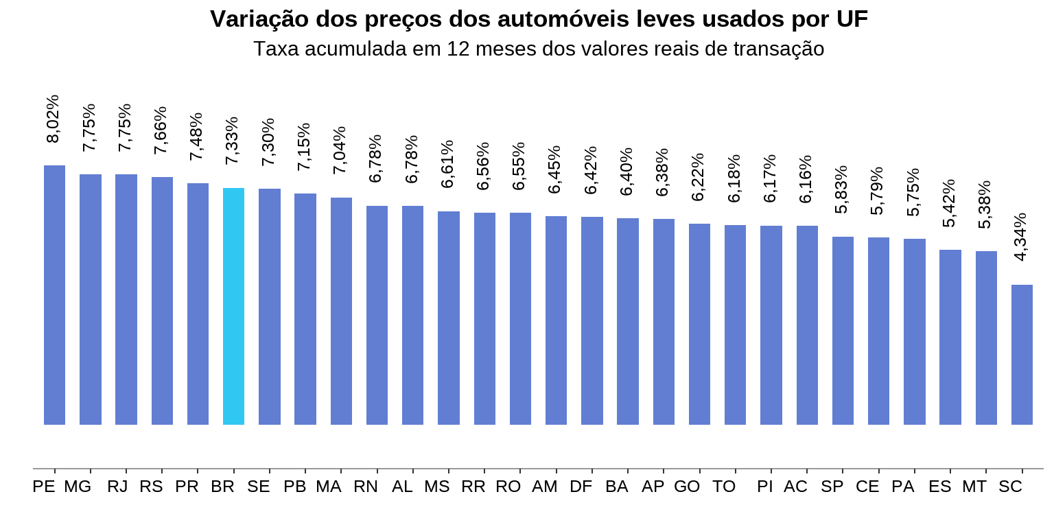 - A cesta de automóveis a combustão (modelos comparáveis), por sua vez, registrou desvalorização menor no mesmo período, de -6,2%.