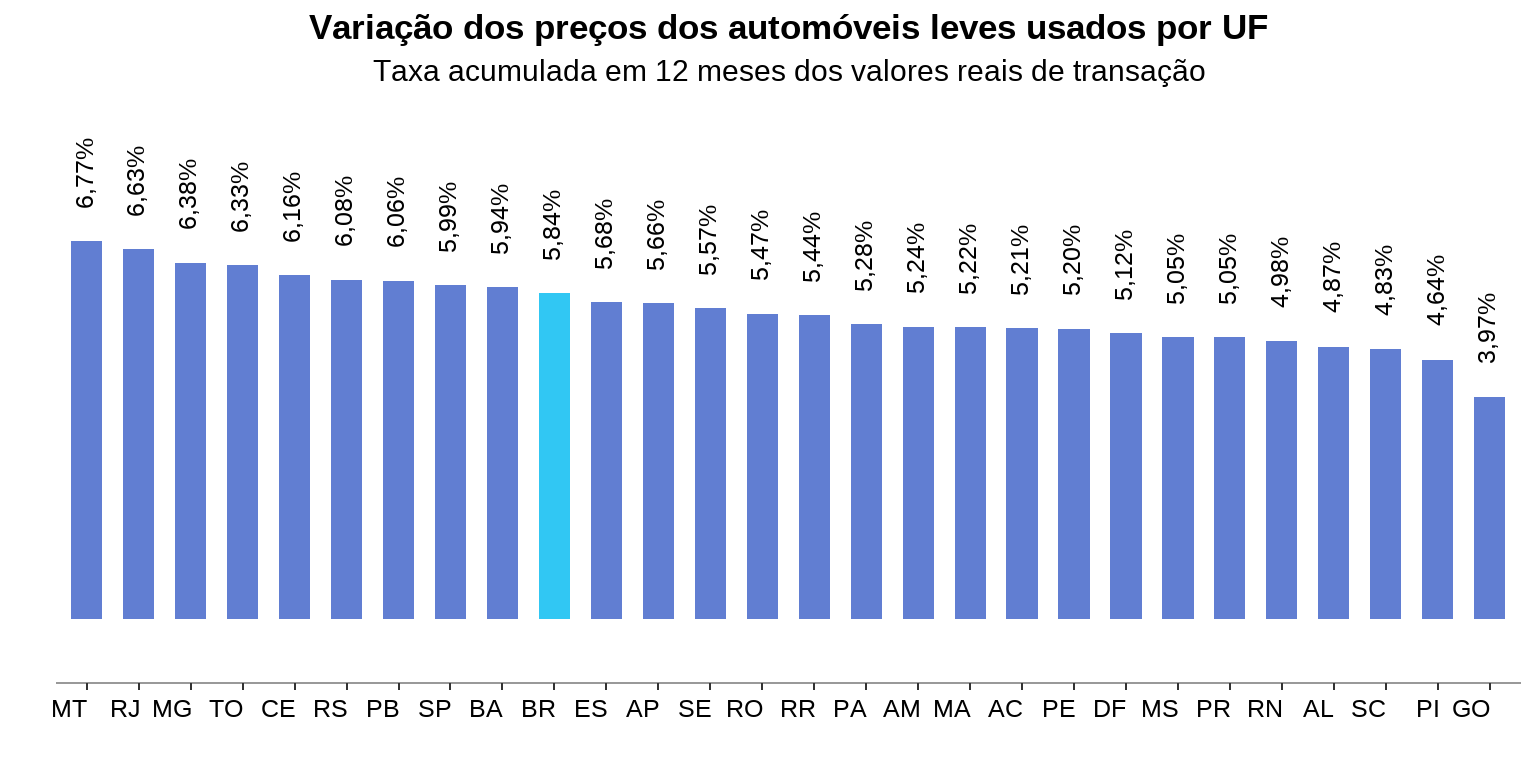 - No acumulado em 12 meses até setembro, o indicador apresentou uma alta de 5,84% nos preços dos automóveis usados.