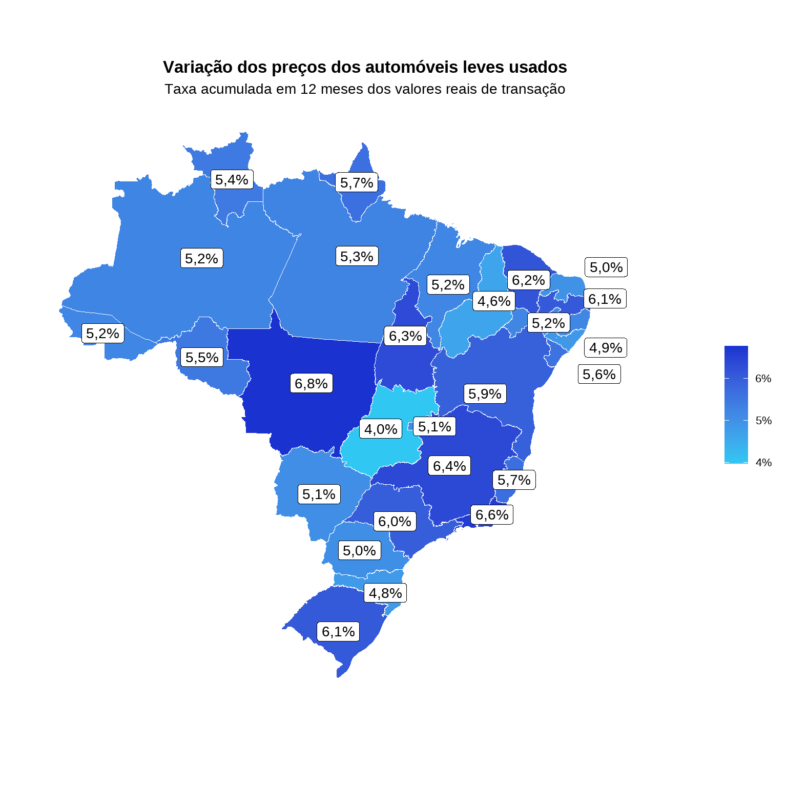 - No acumulado em 12 meses, destaca-se o estado do Mato Grosso, com alta de 6,77%.