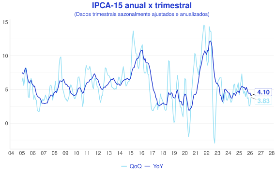 - Em janeiro o IPCA-15 teve resultado abaixo do esperado variando 0.20% no mês. A nossa expectativa era de 0.25%;