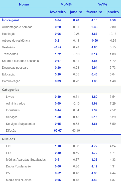 - Analisando os grupos, o grupo com maior impacto positivo em janeiro foi saúde e cuidados pessoais contribuindo com 0.11% no índice;