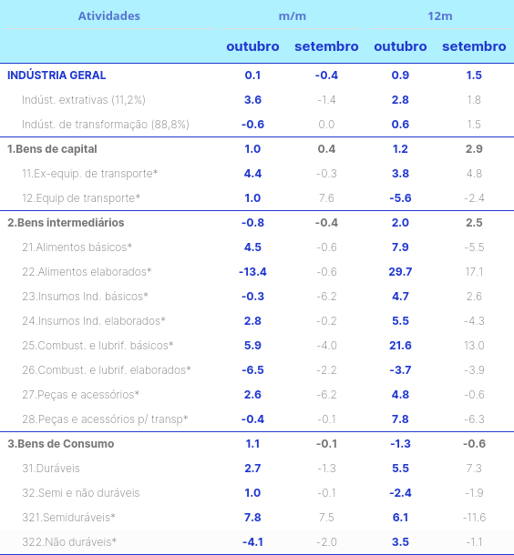 Por dentro da produção industrial: O indicador surpreendeu negativamente apresentando avanço de 0.1% em outubro