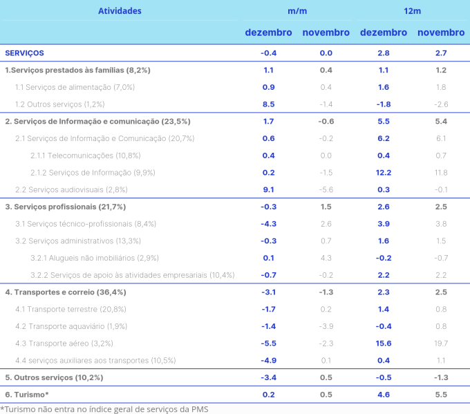 Por dentro dos serviços: O indicador surpreendeu negativamente apresentando recuo de 0.4% em dezembro