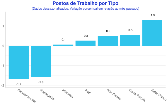 - Analisando os dados dessazonalizados, o desemprego diminuiu de 5.7% para 5.6% no período;
