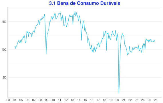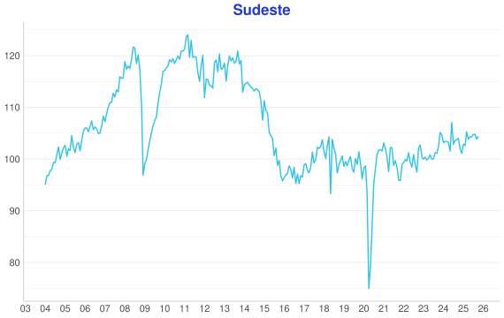 - Com os ultimos dados referentes a outubro. Na análise regional, o Centro-Oeste teve o melhor desempenho avançando 6.3% na comparação mensal, enquanto o Sul registrou o pior resultado regredindo 1.8%.