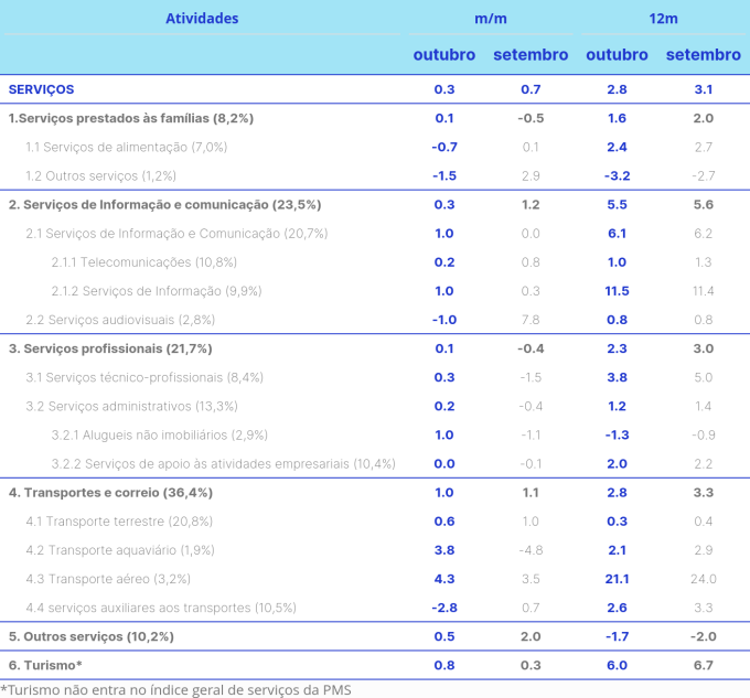 - Analisando o acumulado dos últimos 12 meses, os serviços avançaram 2.8%;