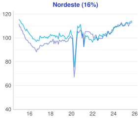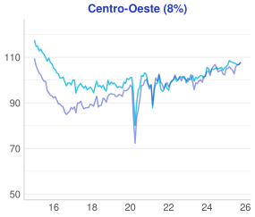 - Já na análise regional, o Sudeste teve o melhor desempenho avançando 0.9% na comparação mensal, enquanto o Sul registrou o pior resultado regredindo 0.6%.