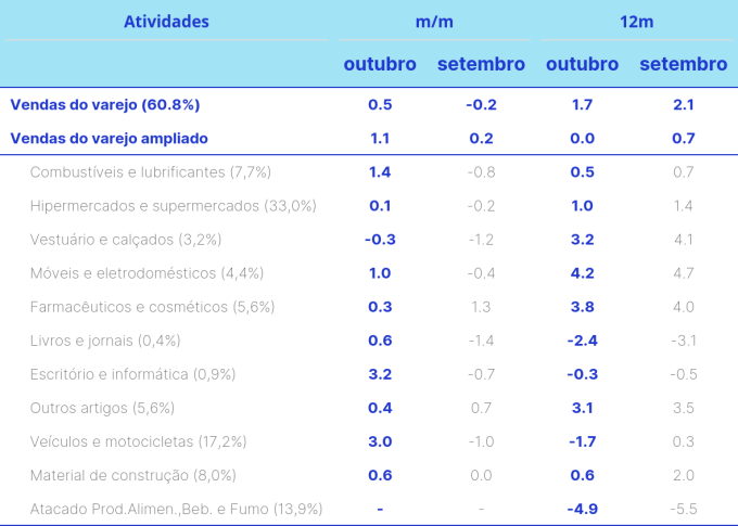 Por dentro das vendas do varejo: O indicador teve resultado em linha com o esperado apresentando avanço de 0.5% em outubro