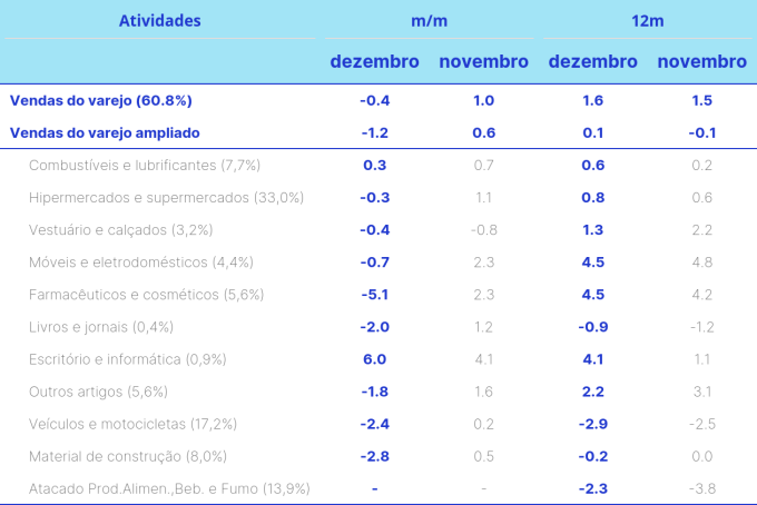 Por dentro das vendas do varejo: O indicador surpreendeu negativamente apresentando recuo de 0.4% em dezembro